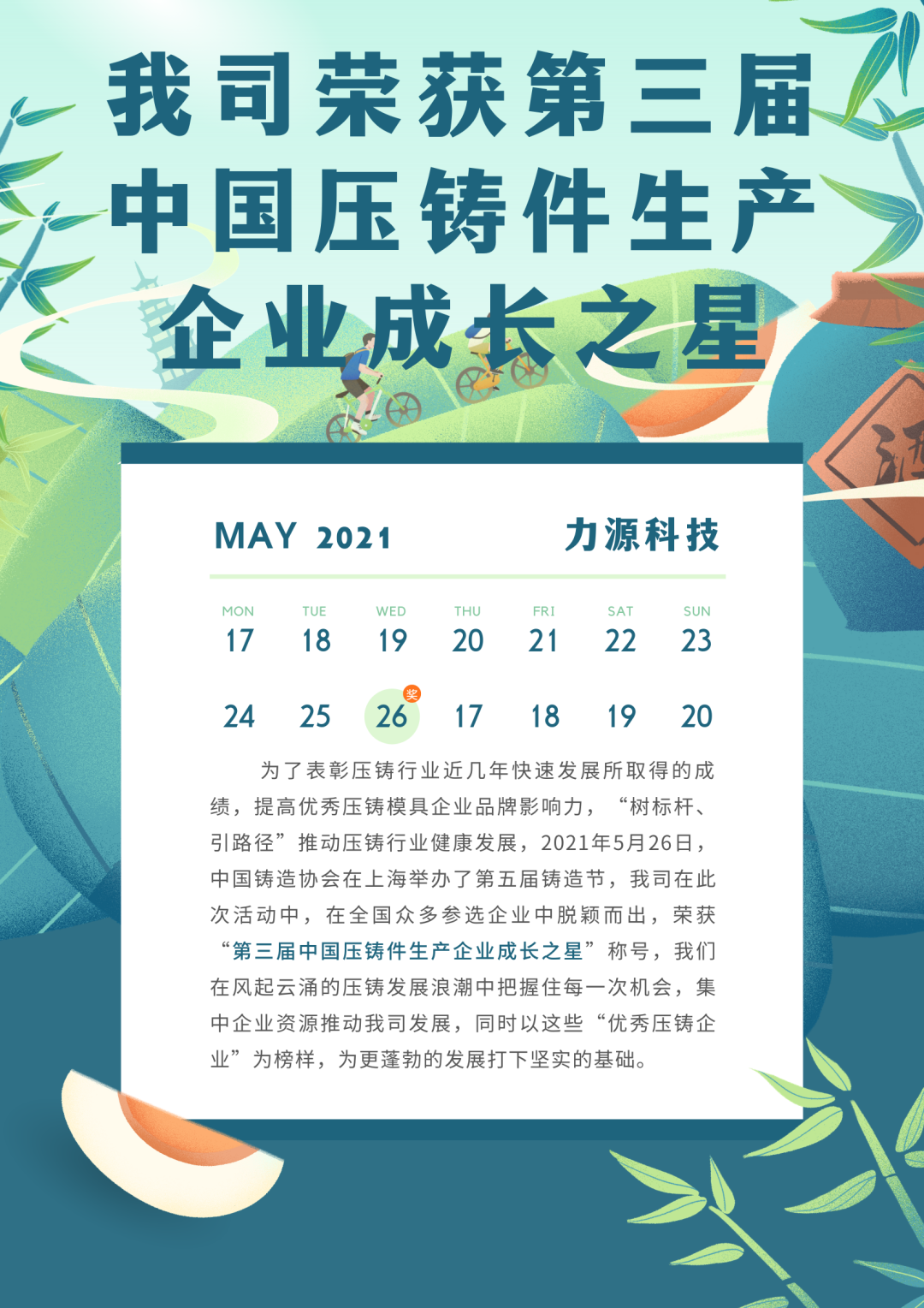 我司榮獲第三屆中國壓鑄件生產(chǎn)企業(yè)成長之星